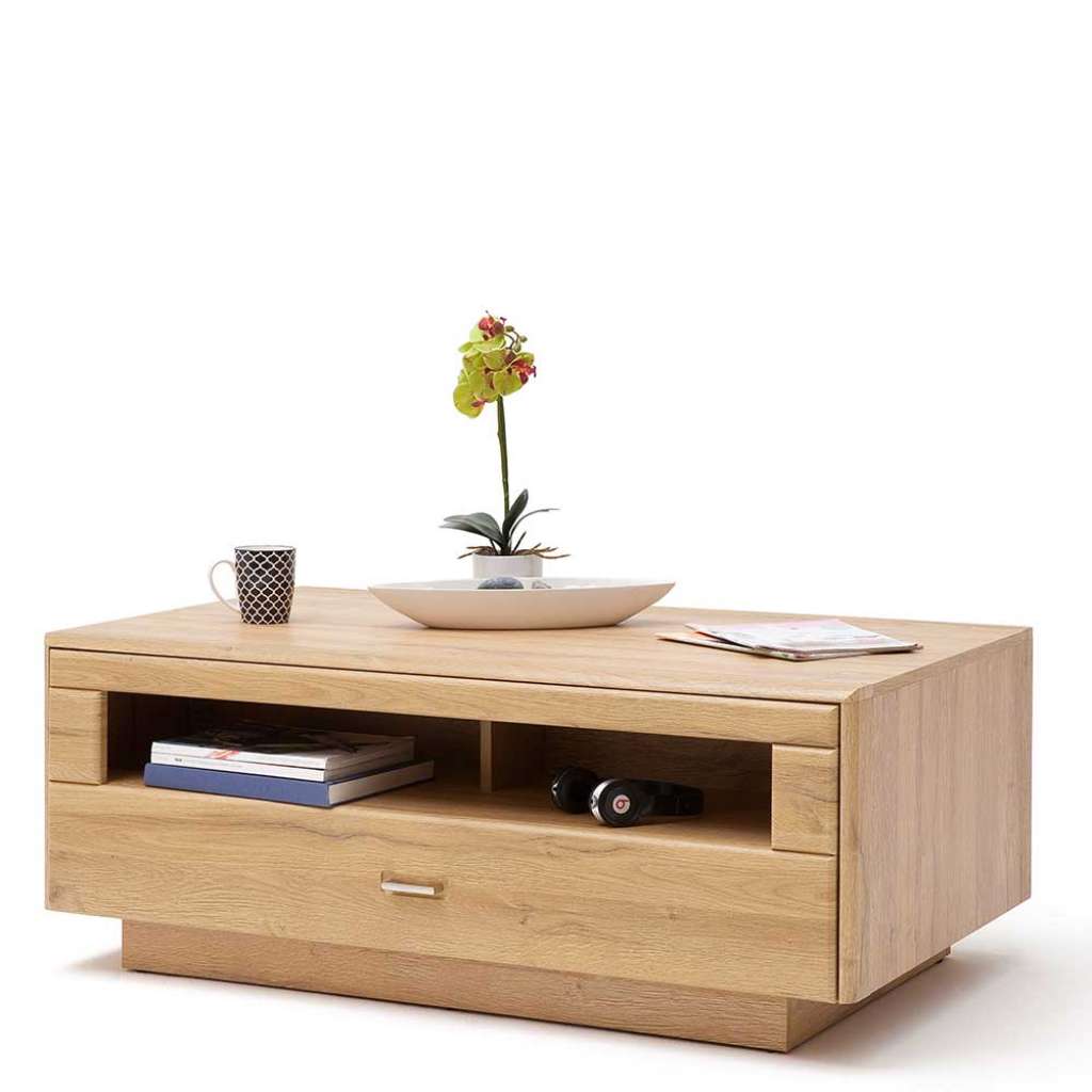 Informationen über Designercouchtisch in Balkeneiche Bianco furniert 115 cm breit