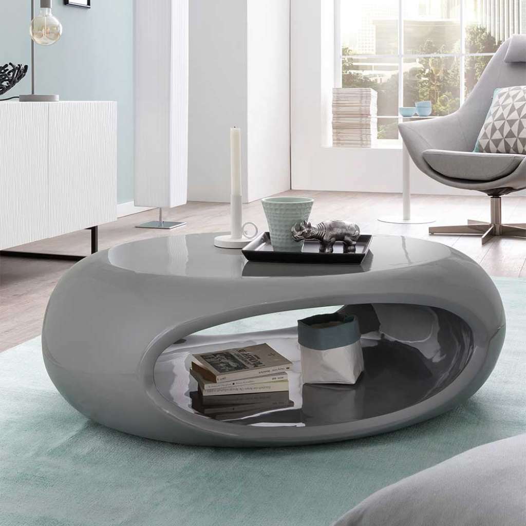 Informationen über Designercouchtisch in Grau Hochglanz oval