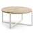 Informationen über Designercouchtisch mit runder Massivholzplatte Bügelgestell aus weißem Stahl