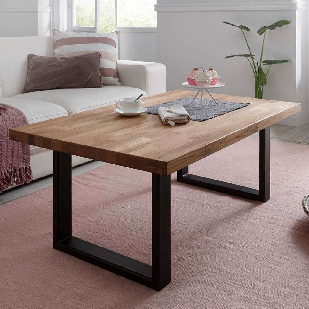 Salontisch aus Eiche Massivholz Bügelgestell aus schwarzem Metall