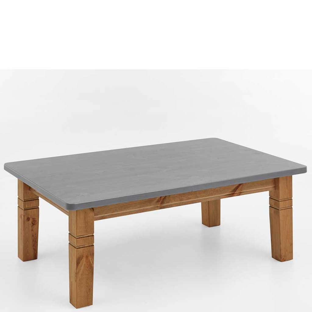 Vollholztisch aus Kiefer Massivholz grauer Tischplatte