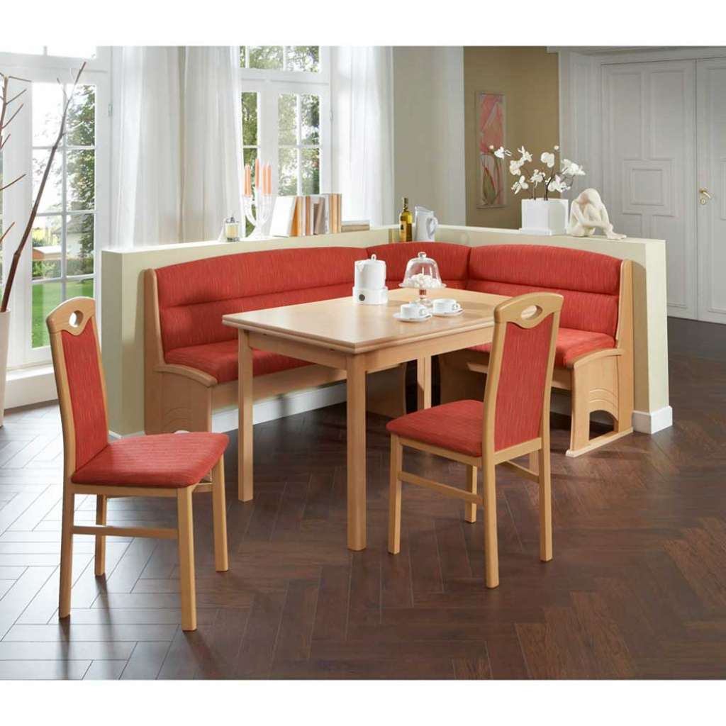 (vierteilig) - Eckbankgruppe 187 cm Breit, 90 cm Hoch, 148 cm Tief - Verlängerbar um je 30 cm, von 120 bis auf 180 cm - Eßecke in Buchefarben und Rot - Mit Bezugsstoff aus Flachgewebe (glatt) - Beidseitig montierbar - Inklusive Eckbank - Sitzecke aus Webstoff, Buche Massivholz und Spanplatte - Sitzgarnitur im klassischen Stil - Inklusive zwei Stühle - Mit aufwendigen Steppungen - Zerlegt, zum leichten Selbstaufbau (Montageanleitung liegt bei) - VierteiligInformationen zur Lieferung:Die Zustellung dieses Produktes erfolgt per Spedition. Sie werden vor der Auslieferung durch die ausliefernde Spedition kontaktiert.Terminvereinbarung: Sie werden frühzeitig (ein paar Tage im Voraus) durch die ausliefernde Spedition kontaktiert und Ihnen der Auslieferzeitpunkt mitgeteilt. Die Kontaktaufnahme erfolgt per Telefon. Bei telefonischer Nichterreichbarkeit werden Sie per Postkarte über das Auslieferdatum informiert.Die Lieferung erfolgt aus Kostengründen Frei Bordsteinkante (bis zur ersten verschlossenen Tür). Für den weiteren Transport der Ware sind Sie eigenverantwortlich.Die Auslieferung erfolgt von Montags bis Freitags. Eine Zustellung an Sonn- und Feiertagen ist nicht möglich.