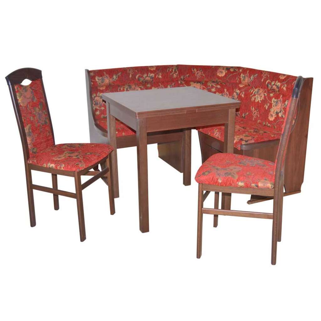 (vierteilig) - Komplette essgruppe vierteilig - Zerlegt, zum leichten Selbstaufbau (Montageanleitung liegt bei) - Mit gepolsterter Rückenlehne - Esszimmer gruppe in modernem Design - Mit Bezugsstoff aus Webstoff - Sitzecke aus Webstoff, Spanplatte und Buche Massivholz - Inklusive zwei Stühle - Inklusive Eckbank - Beidseitig montierbar - Verlängerbar um je 30 cm, von 67 bis auf 127 cm - Mit einer Bezug Strapazierfähigkeit von 45.000 Scheuertouren nach Martindale - Eßecke in Rot und Nussbaumfarben - Eckbankgruppe 125 cm Breit, 85 cm Hoch, 125 cm TiefInformationen zur Lieferung:Die Zustellung dieses Produktes erfolgt per Spedition. Sie werden vor der Auslieferung durch die ausliefernde Spedition kontaktiert.Terminvereinbarung: Sie werden frühzeitig (ein paar Tage im Voraus) durch die ausliefernde Spedition kontaktiert und Ihnen der Auslieferzeitpunkt mitgeteilt. Die Kontaktaufnahme erfolgt per Telefon. Bei telefonischer Nichterreichbarkeit werden Sie per Postkarte über das Auslieferdatum informiert.Die Lieferung erfolgt aus Kostengründen Frei Bordsteinkante (bis zur ersten verschlossenen Tür). Für den weiteren Transport der Ware sind Sie eigenverantwortlich.Die Auslieferung erfolgt von Montags bis Freitags. Eine Zustellung an Sonn- und Feiertagen ist nicht möglich.