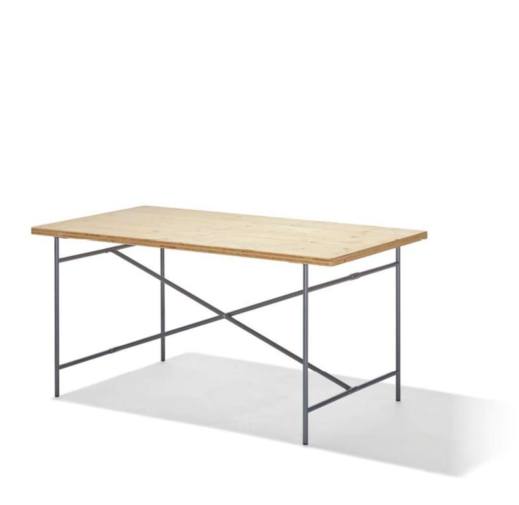 - Eiermann 2 Esstisch - Tischplatte Fichte/Tanne - Gestell edelstahl - 200 x 90 cm - indoor