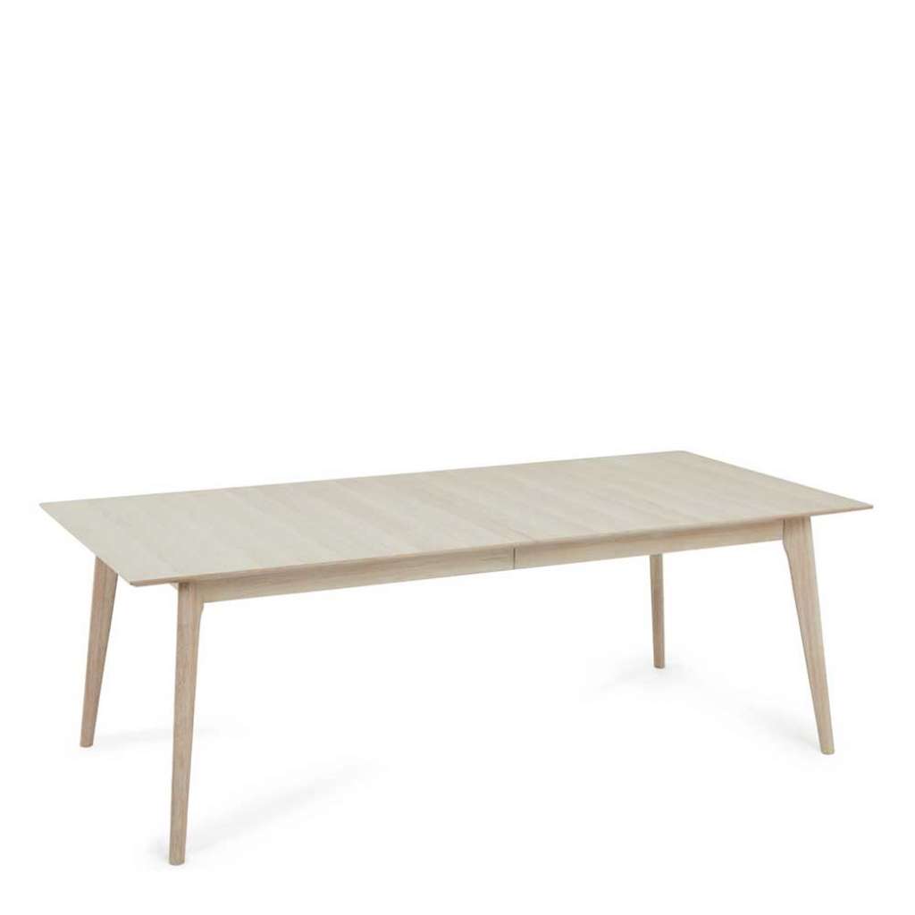 Esstisch Ausziehtisch in Eiche weiß mit Kulissenauszug - Zerlegt, zum leichten Selbstaufbau (Montageanleitung liegt bei) - In rechteckiger Form - Mit Vierfußgestell - Aus MDF - Im Skandi Design - Echtholzfurniert und geölt - Mit Kulissenauszug mit zwei Einlegeplatten - In Eiche weiß - 75 cm HochVarianten - 001: Breite: 270 / Tiefe: 95 / verlängerbar um je 50 cm, von 170 bis auf 270 cm - 002: Breite: 320 / Tiefe: 105 / verlängerbar um je 50 cm, von 220 bis auf 320 cmInformationen zur Lieferung:Der Versand dieses Artikels erfolgt per DHL-Superservice. Dieses beinhaltet folgenden Service für Sie:Terminvereinbarung: Sie werden frühzeitig (ein paar Tage im Voraus) durch die ausliefernde Spedition kontaktiert und Ihnen der Auslieferzeitpunkt mitgeteilt. Die Kontaktaufnahme erfolgt per Telefon. Bei telefonischer Nichterreichbarkeit werden Sie per Postkarte über das Auslieferdatum informiert.Lieferung Frei Verwendungsstelle: Der Transport erfolgt an Ort und Stelle. Sie bestimmen, wohin Sie die Ware getragen haben möchten. Ob Dachgeschoss, Erdgeschoss, Schlaf- oder Wohnzimmer - die Ware wird an den von Ihnen gewünschten Ort vertragen.Zwei Speditionsfahrer vertragen die Ware: keine Mithilfe beim Entladen und Vertragen der Ware nötig. Die Speditionsfahrer sind auf den Möbeltransport spezialisiert und entsprechend geschult, somit sind Transportreklamationen nahezu ausgeschlossen.Die Auslieferung erfolgt von Montags bis Freitags. Eine Zustellung an Sonn- und Feiertagen ist nicht möglich.Alle aufgeführten Serviceleistungen sind im Artikelpreis enthalten. Es fallen keine weiteren Kosten für Sie an. Bei Insellieferungen kann nur ein reiner Abgabeservice angeboten werden - das Vertragen der Ware + Verpackungsentsorgung entfällt hierbei.