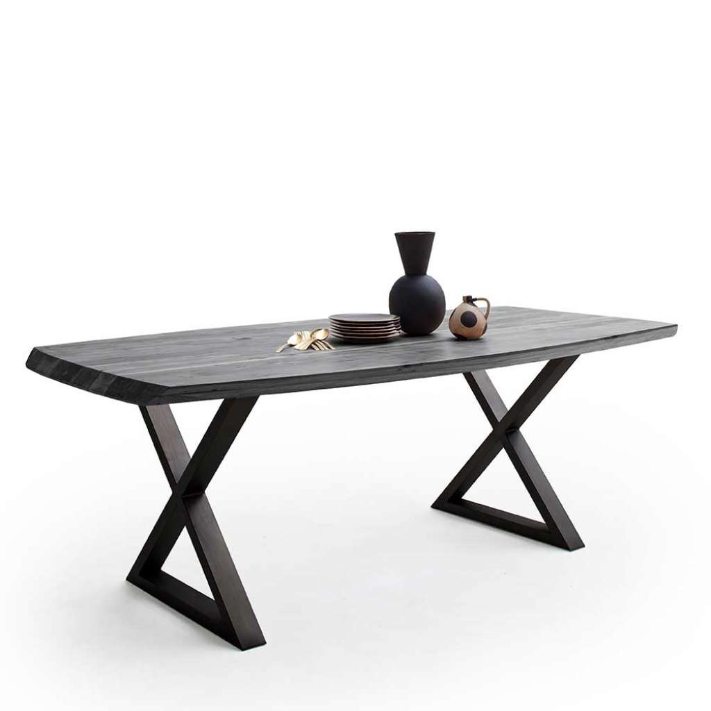 Holztisch in Akazie Grau X Gestell - Zerlegt, zum leichten Selbstaufbau (Montageanleitung liegt bei) - Tisch im Industry und Loft Stil - Küchen Tisch aus Akazie Massivholz und Metall - Mit X Gestell - Tisch aus Holz mit Tischplatte in Bootsform - Mit Massivholz Oberfläche sandgestrahlt und lackiert - Holztischmassiv in Akazie Grau - Esszimmertisch 77 cm Hoch, 100 cm TiefVarianten - 001: Breite: 180 - 002: Breite: 200 - 003: Breite: 220Informationen zur Lieferung:Der Versand dieses Artikels erfolgt per DHL-Superservice. Dieses beinhaltet folgenden Service für Sie:Terminvereinbarung: Sie werden frühzeitig (ein paar Tage im Voraus) durch die ausliefernde Spedition kontaktiert und Ihnen der Auslieferzeitpunkt mitgeteilt. Die Kontaktaufnahme erfolgt per Telefon. Bei telefonischer Nichterreichbarkeit werden Sie per Postkarte über das Auslieferdatum informiert.Lieferung Frei Verwendungsstelle: Der Transport erfolgt an Ort und Stelle. Sie bestimmen, wohin Sie die Ware getragen haben möchten. Ob Dachgeschoss, Erdgeschoss, Schlaf- oder Wohnzimmer - die Ware wird an den von Ihnen gewünschten Ort vertragen.Zwei Speditionsfahrer vertragen die Ware: keine Mithilfe beim Entladen und Vertragen der Ware nötig. Die Speditionsfahrer sind auf den Möbeltransport spezialisiert und entsprechend geschult, somit sind Transportreklamationen nahezu ausgeschlossen.Die Auslieferung erfolgt von Montags bis Freitags. Eine Zustellung an Sonn- und Feiertagen ist nicht möglich.Alle aufgeführten Serviceleistungen sind im Artikelpreis enthalten. Es fallen keine weiteren Kosten für Sie an. Bei Insellieferungen kann nur ein reiner Abgabeservice angeboten werden - das Vertragen der Ware + Verpackungsentsorgung entfällt hierbei.