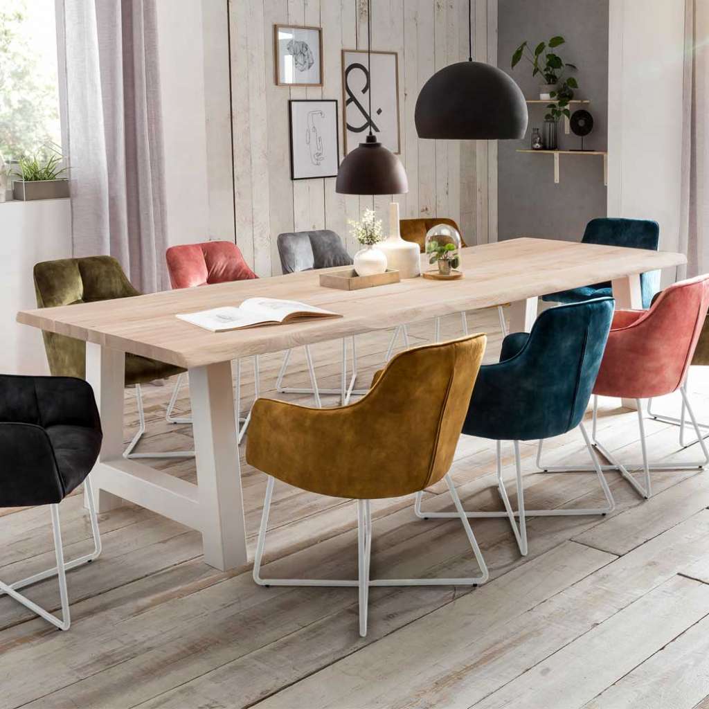 Holztisch Massiv mit Baumkante Platte A Form Gestell - Essenstisch 77 cm Hoch - Vollholztisch in Eiche gekälkt und Weiß - Mit Massivholz Oberfläche gekälkt - Mit A Fußgestell - Mit natürlicher Baumkante - Küchentisch aus Metall und Eiche Massivholz - Baumkantentisch in modernem Design - Massivtisch mit rechteckiger Tischplatte - Zerlegt, zum leichten Selbstaufbau (Montageanleitung liegt bei)Varianten - 001: Breite: 160 / Tiefe: 90 - 002: Breite: 180 / Tiefe: 90 - 003: Breite: 200 / Tiefe: 100 - 004: Breite: 220 / Tiefe: 100 - 005: Breite: 240 / Tiefe: 100 - 006: Breite: 260 / Tiefe: 100 - 007: Breite: 300 / Tiefe: 100Informationen zur Lieferung:Der Versand dieses Artikels erfolgt per DHL-Superservice. Dieses beinhaltet folgenden Service für Sie:Terminvereinbarung: Sie werden frühzeitig (ein paar Tage im Voraus) durch die ausliefernde Spedition kontaktiert und Ihnen der Auslieferzeitpunkt mitgeteilt. Die Kontaktaufnahme erfolgt per Telefon. Bei telefonischer Nichterreichbarkeit werden Sie per Postkarte über das Auslieferdatum informiert.Lieferung Frei Verwendungsstelle: Der Transport erfolgt an Ort und Stelle. Sie bestimmen, wohin Sie die Ware getragen haben möchten. Ob Dachgeschoss, Erdgeschoss, Schlaf- oder Wohnzimmer - die Ware wird an den von Ihnen gewünschten Ort vertragen.Zwei Speditionsfahrer vertragen die Ware: keine Mithilfe beim Entladen und Vertragen der Ware nötig. Die Speditionsfahrer sind auf den Möbeltransport spezialisiert und entsprechend geschult, somit sind Transportreklamationen nahezu ausgeschlossen.Die Auslieferung erfolgt von Montags bis Freitags. Eine Zustellung an Sonn- und Feiertagen ist nicht möglich.Alle aufgeführten Serviceleistungen sind im Artikelpreis enthalten. Es fallen keine weiteren Kosten für Sie an. Bei Insellieferungen kann nur ein reiner Abgabeservice angeboten werden - das Vertragen der Ware + Verpackungsentsorgung entfällt hierbei.