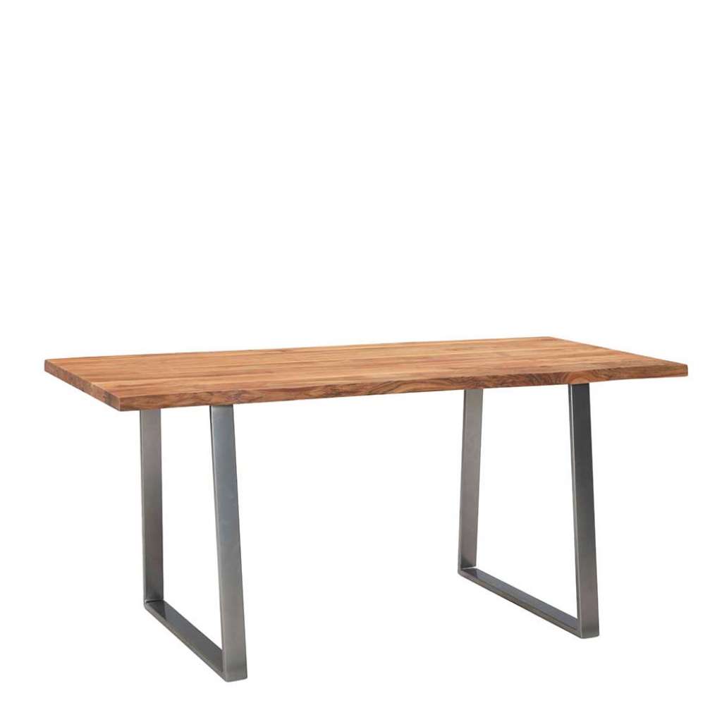 Küchen Tisch Esstisch im Industry und Loft Stil mit Bügelgestell - Zerlegt, zum leichten Selbstaufbau (Montageanleitung liegt bei) - Tisch Esszimmer in rechteckiger Form - Mit Massivholz Oberfläche lackiert - Mit Bügelgestell - Tisch im Industry und Loft Stil - Küchentisch aus Akazie Massivholz und Metall - Mit natürlicher Baumkante - Echtholztisch in Akaziefarben und Chromfarben - Esszimmer Tisch 76 cm HochVarianten - 001: Breite: 120 / Tiefe: 60 - 002: Breite: 140 / Tiefe: 80 - 003: Breite: 160 / Tiefe: 80 - 004: Breite: 180 / Tiefe: 90 - 005: Breite: 200 / Tiefe: 100Informationen zur Lieferung:Die Zustellung dieses Produktes erfolgt per DPD. Sollten Sie bei der Erstzustellung nicht angetroffen werden, hinterlässt der Zusteller in Ihrem Briefkasten eine Benachrichtigungskarte mit dem zweiten Liefertermin, den Lieferdaten sowie Kontaktinformationen. Somit haben Sie die Möglichkeit, sich bezüglich des Empfangs Ihrer Ware mit DPD in Verbindung zu setzen. Die Zustellung erfolgt maximal 3x, sofern die beiden ersten Termine erfolglos bleiben sollten. Die Auslieferung erfolgt von Montags bis Freitags. Eine Zustellung an Sonn- und Feiertagen ist nicht möglich.