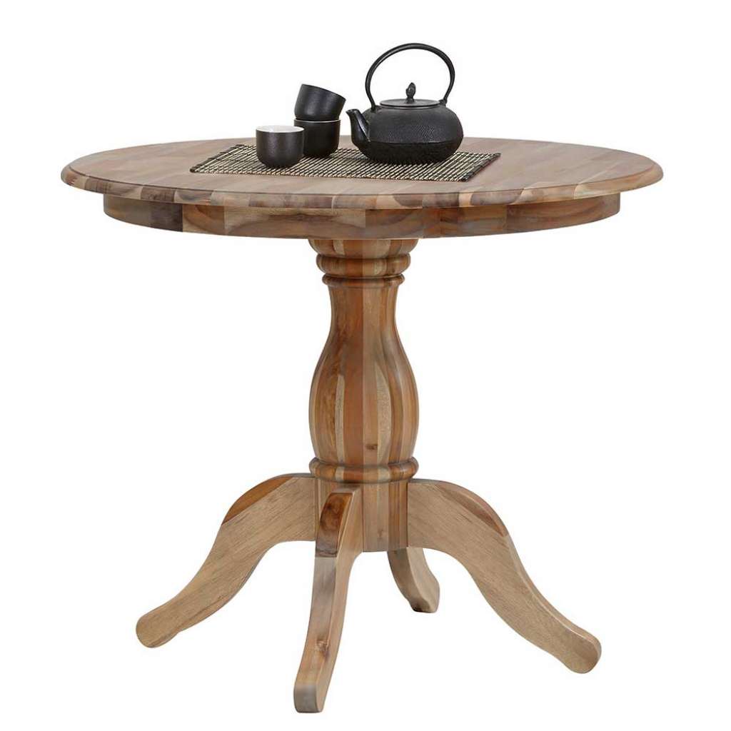 Landhaus Esstisch aus Akazie Massivholz rund - Esszimmertisch 76 cm Hoch - Massivesstisch in Akaziefarben - Holzesstisch im Landhausstil - Küchen Tisch aus Akazie Massivholz - Auf Säulengestell - Mit abgerundeten Korpuskanten - Rundtisch mit runder Tischplatte - Mit Massivholz Oberfläche lackiert - Zerlegt, zum leichten Selbstaufbau (Montageanleitung liegt bei)Varianten - 001: Breite: 90 / Tiefe: 90 - 002: Breite: 120 / Tiefe: 120Informationen zur Lieferung:Der Versand dieses Artikels erfolgt per DHL-Superservice. Dieses beinhaltet folgenden Service für Sie:Terminvereinbarung: Sie werden frühzeitig (ein paar Tage im Voraus) durch die ausliefernde Spedition kontaktiert und Ihnen der Auslieferzeitpunkt mitgeteilt. Die Kontaktaufnahme erfolgt per Telefon. Bei telefonischer Nichterreichbarkeit werden Sie per Postkarte über das Auslieferdatum informiert.Lieferung Frei Verwendungsstelle: Der Transport erfolgt an Ort und Stelle. Sie bestimmen, wohin Sie die Ware getragen haben möchten. Ob Dachgeschoss, Erdgeschoss, Schlaf- oder Wohnzimmer - die Ware wird an den von Ihnen gewünschten Ort vertragen.Zwei Speditionsfahrer vertragen die Ware: keine Mithilfe beim Entladen und Vertragen der Ware nötig. Die Speditionsfahrer sind auf den Möbeltransport spezialisiert und entsprechend geschult, somit sind Transportreklamationen nahezu ausgeschlossen.Die Auslieferung erfolgt von Montags bis Freitags. Eine Zustellung an Sonn- und Feiertagen ist nicht möglich.Alle aufgeführten Serviceleistungen sind im Artikelpreis enthalten. Es fallen keine weiteren Kosten für Sie an. Bei Insellieferungen kann nur ein reiner Abgabeservice angeboten werden - das Vertragen der Ware + Verpackungsentsorgung entfällt hierbei.