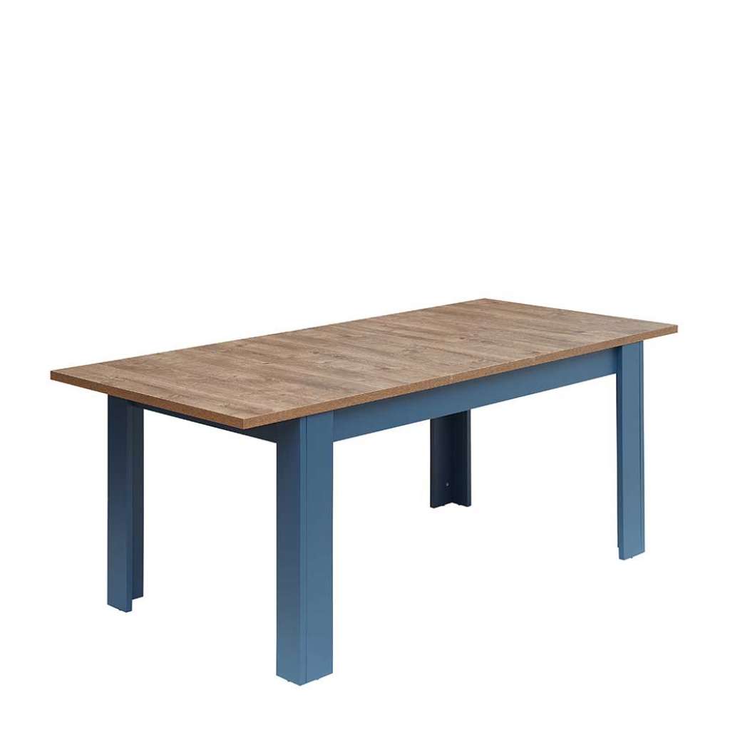 Landhaus Esszimmertisch in Eiche dunkel und Blau zwei Einlegeplatten