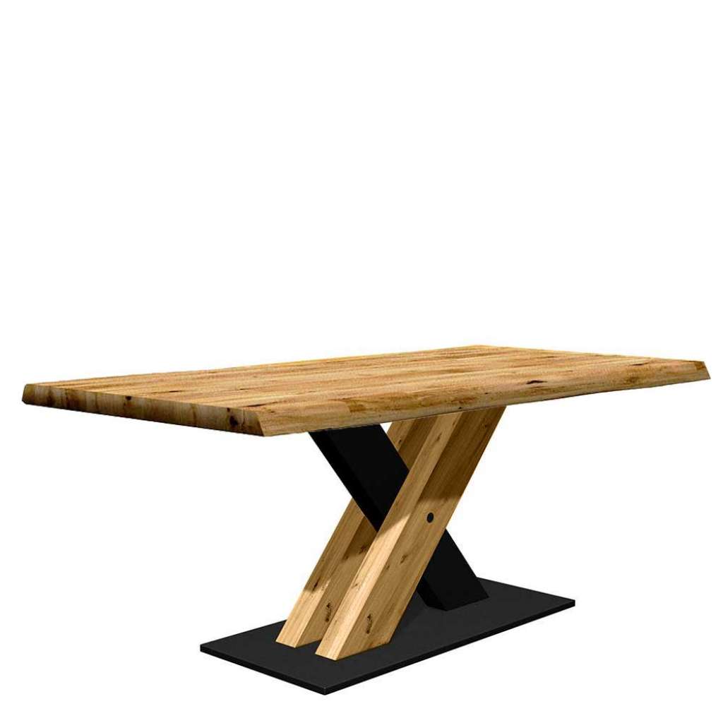 Massiver Esstisch aus Eiche und Metall natürlicher Baumkante - Esszimmertisch 77 cm Hoch - Mit natürlicher Baumkante - Auf Säulengestell - Küchen Tisch aus Eiche Massivholz und Metall - Tisch Massivholz in Eichefarben und Schwarz - Mit Massivholz Oberfläche geölt - Tisch in modernem Design - Tisch Esszimmer mit rechteckiger Tischplatte - Zerlegt, zum leichten Selbstaufbau (Montageanleitung liegt bei)Varianten - 001: Breite: 140 / Tiefe: 90 - 002: Breite: 140 / Tiefe: 100 - 003: Breite: 160 / Tiefe: 90 - 004: Breite: 160 / Tiefe: 100 - 005: Breite: 180 / Tiefe: 90 - 006: Breite: 180 / Tiefe: 100 - 007: Breite: 200 / Tiefe: 90 - 008: Breite: 200 / Tiefe: 100 - 009: Breite: 220 / Tiefe: 90 - 010: Breite: 220 / Tiefe: 100 - 011: Breite: 240 / Tiefe: 90 - 012: Breite: 240 / Tiefe: 100Informationen zur Lieferung:Der Versand dieses Artikels erfolgt per DHL-Superservice. Dieses beinhaltet folgenden Service für Sie:Terminvereinbarung: Sie werden frühzeitig (ein paar Tage im Voraus) durch die ausliefernde Spedition kontaktiert und Ihnen der Auslieferzeitpunkt mitgeteilt. Die Kontaktaufnahme erfolgt per Telefon. Bei telefonischer Nichterreichbarkeit werden Sie per Postkarte über das Auslieferdatum informiert.Lieferung Frei Verwendungsstelle: Der Transport erfolgt an Ort und Stelle. Sie bestimmen, wohin Sie die Ware getragen haben möchten. Ob Dachgeschoss, Erdgeschoss, Schlaf- oder Wohnzimmer - die Ware wird an den von Ihnen gewünschten Ort vertragen.Zwei Speditionsfahrer vertragen die Ware: keine Mithilfe beim Entladen und Vertragen der Ware nötig. Die Speditionsfahrer sind auf den Möbeltransport spezialisiert und entsprechend geschult, somit sind Transportreklamationen nahezu ausgeschlossen.Die Auslieferung erfolgt von Montags bis Freitags. Eine Zustellung an Sonn- und Feiertagen ist nicht möglich.Alle aufgeführten Serviceleistungen sind im Artikelpreis enthalten. Es fallen keine weiteren Kosten für Sie an. Bei Insellieferungen kann nur ein reiner Abgabeservice angeboten werden - das Vertragen der Ware + Verpackungsentsorgung entfällt hierbei.