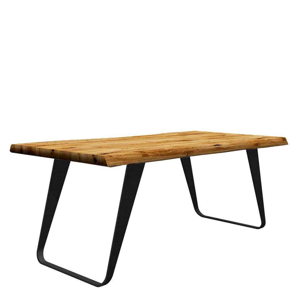 Tisch Baumkante Bügelgestell aus Eiche Massivholz Metall