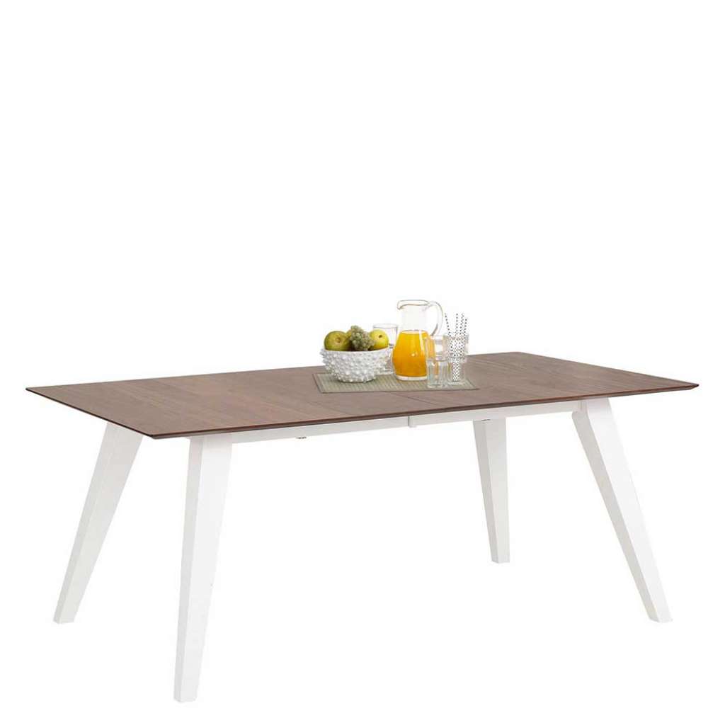 Tisch in Walnussfarben und Weiß Mittelauszug
