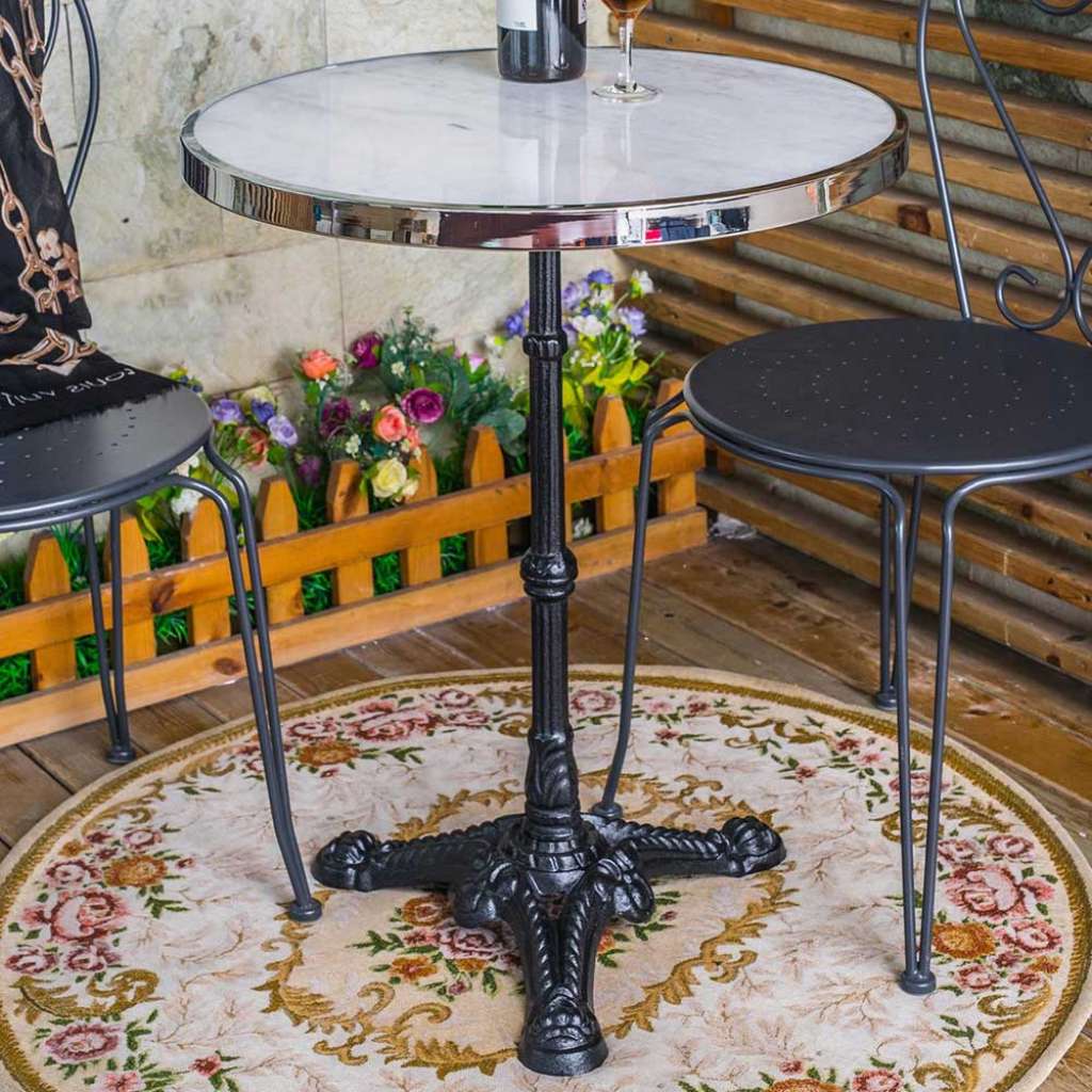 Vintage Beitisch in Weiß und Schwarz runder Marmorplatte - Esszimmer Tisch 57 cm Breit, 71 cm Hoch, 57 cm Tief - Tisch aus Marmorplatte und Gusseisen - Tischgestell im Vintage Look - Küchen Tisch in Weiß, Chromfarben und Schwarz - Mit Metall Oberfläche lackiert - Auf Säulengestell - Mit runder Tischplatte - Zerlegt, zum leichten Selbstaufbau (Montageanleitung liegt bei)Informationen zur Lieferung:Der Versand dieses Artikels erfolgt per DHL-Superservice. Dieses beinhaltet folgenden Service für Sie:Terminvereinbarung: Sie werden frühzeitig (ein paar Tage im Voraus) durch die ausliefernde Spedition kontaktiert und Ihnen der Auslieferzeitpunkt mitgeteilt. Die Kontaktaufnahme erfolgt per Telefon. Bei telefonischer Nichterreichbarkeit werden Sie per Postkarte über das Auslieferdatum informiert.Lieferung Frei Verwendungsstelle: Der Transport erfolgt an Ort und Stelle. Sie bestimmen, wohin Sie die Ware getragen haben möchten. Ob Dachgeschoss, Erdgeschoss, Schlaf- oder Wohnzimmer - die Ware wird an den von Ihnen gewünschten Ort vertragen.Zwei Speditionsfahrer vertragen die Ware: keine Mithilfe beim Entladen und Vertragen der Ware nötig. Die Speditionsfahrer sind auf den Möbeltransport spezialisiert und entsprechend geschult, somit sind Transportreklamationen nahezu ausgeschlossen.Die Auslieferung erfolgt von Montags bis Freitags. Eine Zustellung an Sonn- und Feiertagen ist nicht möglich.Alle aufgeführten Serviceleistungen sind im Artikelpreis enthalten. Es fallen keine weiteren Kosten für Sie an. Bei Insellieferungen kann nur ein reiner Abgabeservice angeboten werden - das Vertragen der Ware + Verpackungsentsorgung entfällt hierbei.