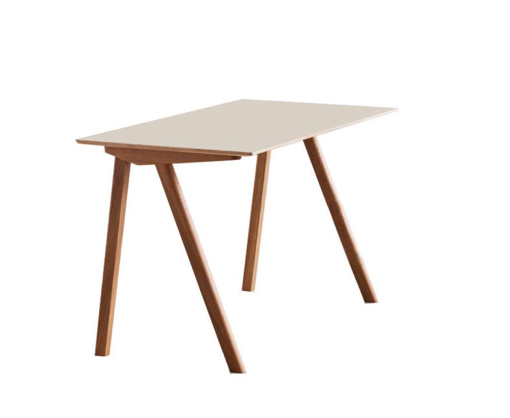 Klare Linien sind das Markenzeichen dieses kompakten Schreibtisches aus der Serie Copenhague des dänischen Herstellers HAY. Die Oberfläche des Tisches mit den Maßen 130 x 65 cm ist aus Schichtholt, überzogen mit einer Schicht Eichfurnier oder Linoleum. Die Beine des Gestells sind asymmetrisch angeordnet, aus massivem Eichenholz und geseift, lackiert oder dunkel gebeizt erhältlich. Wer nur wenig Platz zum Einrichten des Arbeitsplatzes hat und einen modernen und hochfunktionellen Schreibtisch sucht, für den ist der CPH 90 eine gute Lösung. Besonderheiten - funktionell und kompakt - überall einsetzbar - robust