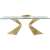 Tisch: Luxus Appeal und Raffinesse Ein bisschen Glamour hat noch niemanden geschadet. Dieser Esstisch könnte auch als moderne Möbelskulptur im Museum stehen. Er beeindruckt mit gestalterischer Raffinesse und einer eleganten, leicht exzentrischen Note. Die Tischplatte aus 13 mm starken Sicherheitsglas wird getragen von zwei kunstvoll geformten, gold-farbenen Beinen. Der Tisch ist perfekt geeignet für eine glamourös-eklektische Einrichtung und sorgt für einwenig Hollywood-Appeal. Damit gewinnt die Einrichtung an Star Qualität. Weitere Ausführungen erhältlich.