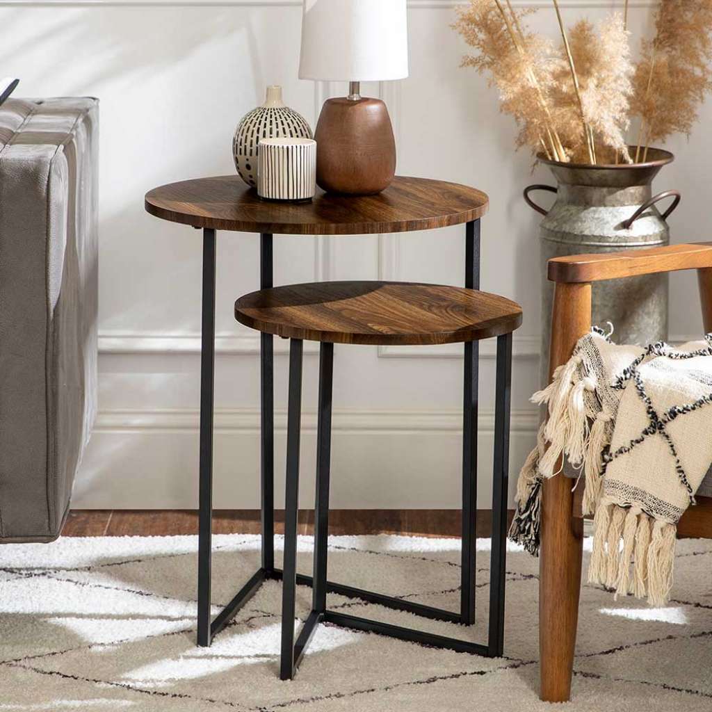 (zweiteilig) - Beistelltisch 50 cm Breit, 61 cm Hoch, 50 cm Tief - Tisch für Wohnzimmer in Walnussfarben und Schwarz - Foliert - Mit runder Tischplatte - Mit Bügelgestell - Telefonregal aus Metall und MDF - Tischgestell in modernem Design - Zerlegt, zum leichten Selbstaufbau (Montageanleitung liegt bei) - ZweiteiligInformationen zur Lieferung:Der Versand dieses Artikels erfolgt per DHL Paketdienst (Deutsche Post). Sollten Sie bei der Erstzustellung nicht angetroffen werden, hinterläßt der Zusteller in Ihrem Briefkasten eine Benachrichtigungskarte. Sie können die Ware dann in Ihrer Postfiliale vor Ort abholen. Die Auslieferung erfolgt von Montags bis Samstags. Eine Zustellung an Sonn- und Feiertagen ist nicht möglich.