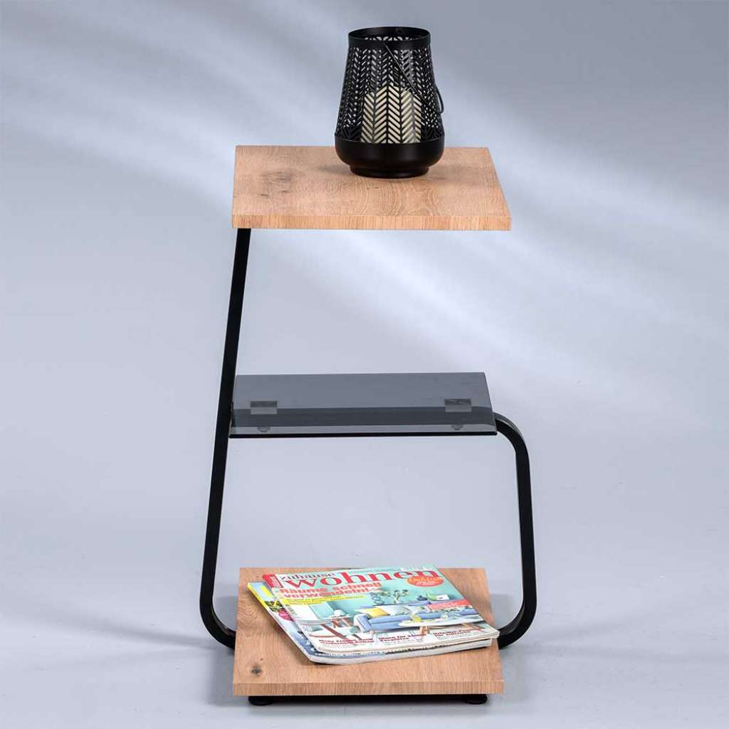 Beistelltisch mit Ablagen in Wildeichefarben Grau - Anstelltisch 40 cm Breit, 56 cm Hoch, 39 cm Tief - Mit flacher Bodenplatte - Mit zwei zusätzlichen Ablageflächen unterhalb der Tischplatte - Wohnzimmertisch in Wildeichefarben, Schwarz und Grau - Telefontischchen aus MDF, Sicherheitsglas und Metall - Foliert - Tisch in modernem Design - Mit rechteckiger Tischplatte - Zerlegt, zum leichten Selbstaufbau (Montageanleitung liegt bei)Informationen zur Lieferung:Der Versand dieses Artikels erfolgt per DHL Paketdienst (Deutsche Post). Sollten Sie bei der Erstzustellung nicht angetroffen werden, hinterläßt der Zusteller in Ihrem Briefkasten eine Benachrichtigungskarte. Sie können die Ware dann in Ihrer Postfiliale vor Ort abholen. Die Auslieferung erfolgt von Montags bis Samstags. Eine Zustellung an Sonn- und Feiertagen ist nicht möglich.