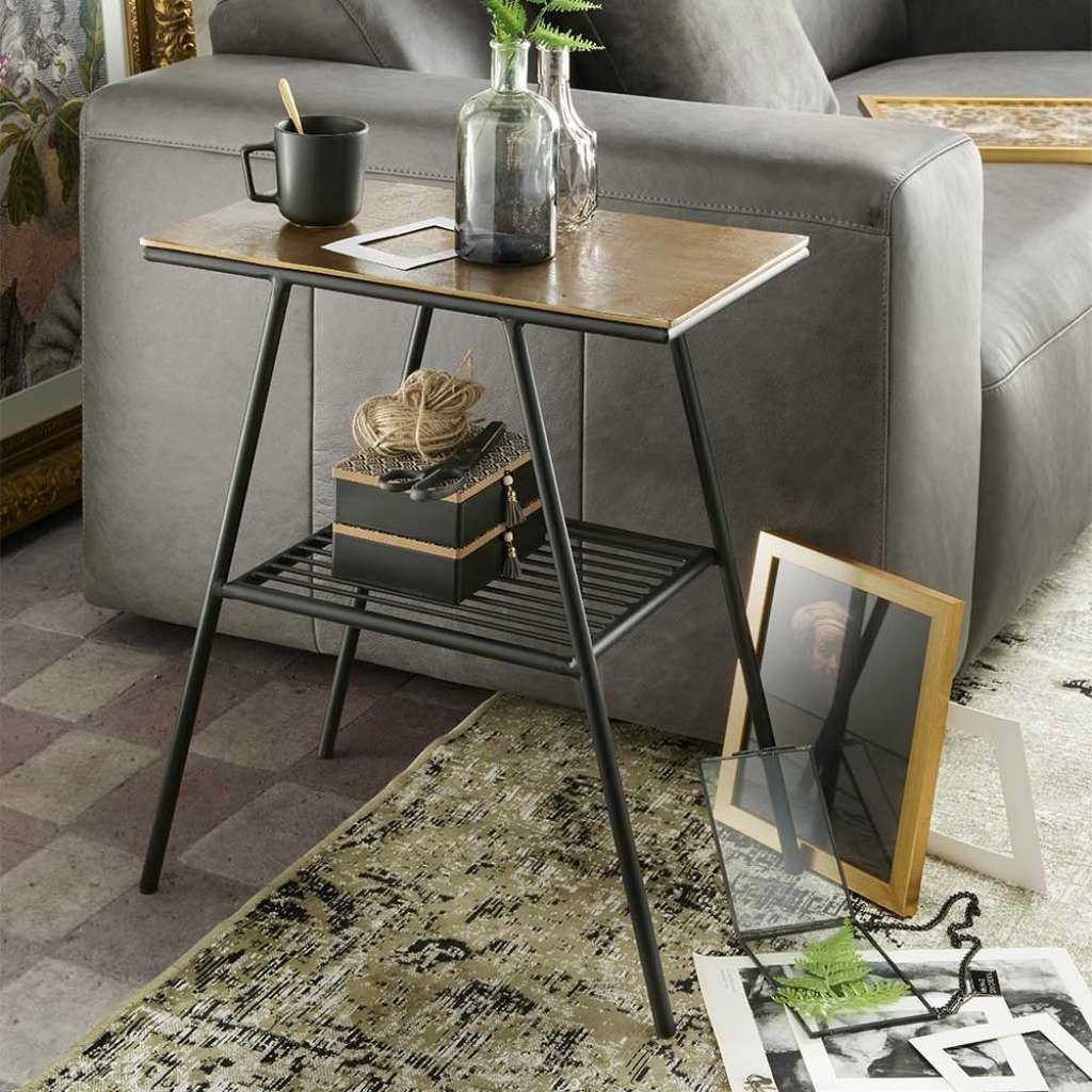 Informationen über Beistelltischchen aus Metall Altgoldfarben und Schwarz