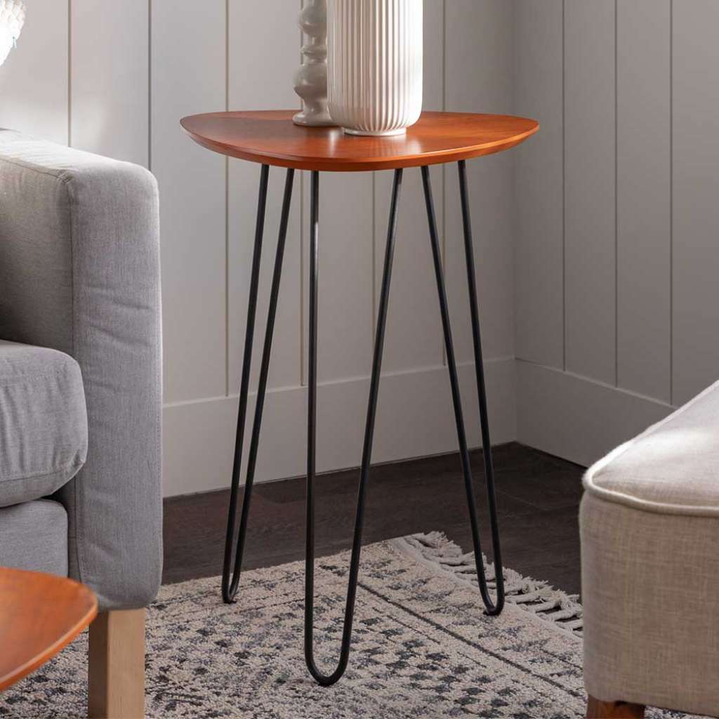 Informationen über Hoher Beistelltisch im Retrostil Dreibeingestell