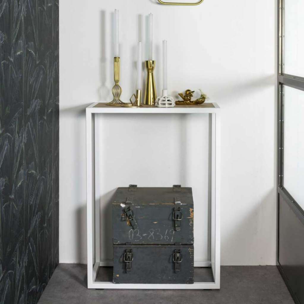 Informationen über Konsolentisch aus Stahl in Weiß Massivholzplatte