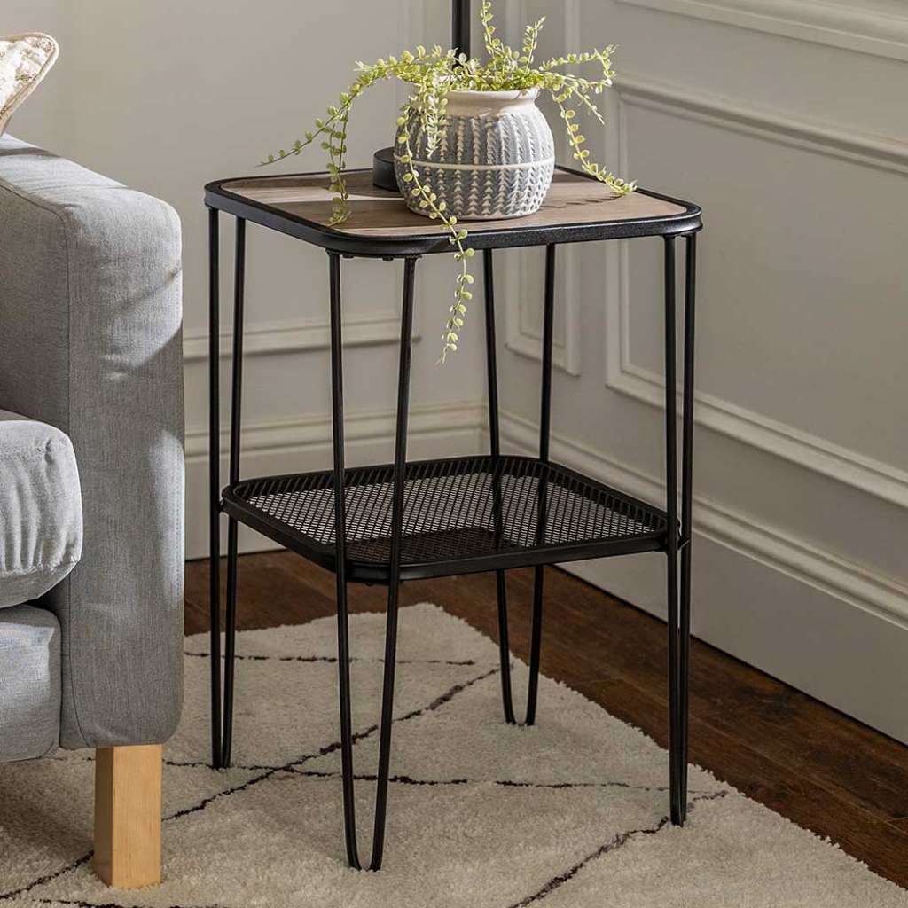 Metall Beistelltisch im Industrie und Loft Stil Gitterablage - Beistelltischchen 41 cm Breit, 61 cm Hoch, 41 cm Tief - Wohnzimmer Tisch in Holz Grey Wash und Schwarz - Mit abgerundeten Korpuskanten mit Metall Umrandung - Foliert - Mit quadratischer Tischplatte - Mit einer zusätzlichen Ablagefläche unterhalb der Tischplatte - Tischgestell im Industry und Loft Stil - Telefonregal aus Metall und MDF - Mit Vierfußgestell - Zerlegt, zum leichten Selbstaufbau (Montageanleitung liegt bei)Informationen zur Lieferung:Der Versand dieses Artikels erfolgt per DHL Paketdienst (Deutsche Post). Sollten Sie bei der Erstzustellung nicht angetroffen werden, hinterläßt der Zusteller in Ihrem Briefkasten eine Benachrichtigungskarte. Sie können die Ware dann in Ihrer Postfiliale vor Ort abholen. Die Auslieferung erfolgt von Montags bis Samstags. Eine Zustellung an Sonn- und Feiertagen ist nicht möglich.