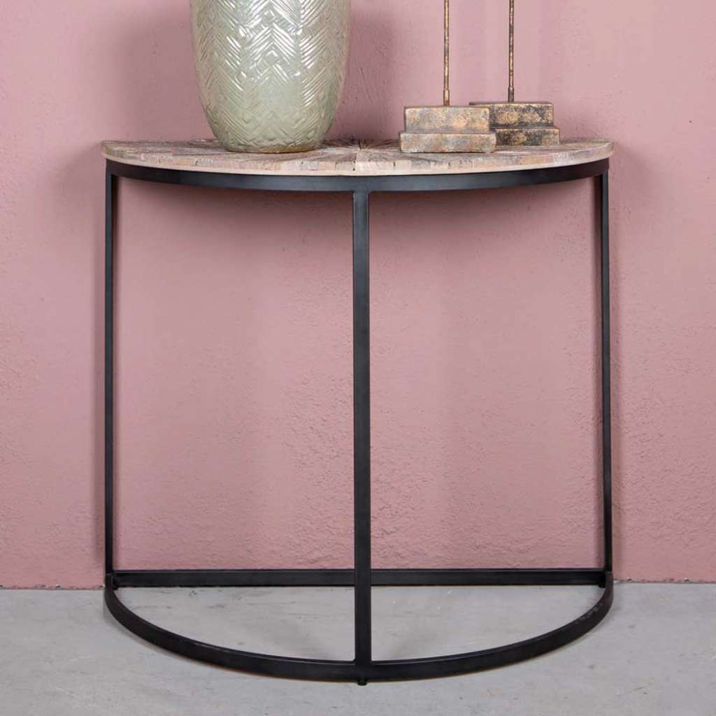 Telefonkonsole aus Recyclingholz Eisen - Beistelltisch 90 cm Breit, 78 cm Hoch, 40 cm Tief - Industrietisch mit halbrunder Tischplatte - Mit Massivholz Oberfläche White Wash - Vollholztisch in Holz White Wash und Schwarz - Wohnzimmertisch aus Recyclingholz und Eisen - Telefontisch im Industry und Loft Stil - Mit Bügelgestell - Fertig montierte Anlieferung (eventuell müssen noch Kleinteile angebracht werden)Informationen zur Lieferung:Der Versand dieses Artikels erfolgt per DHL-Superservice. Dieses beinhaltet folgenden Service für Sie:Terminvereinbarung: Sie werden frühzeitig (ein paar Tage im Voraus) durch die ausliefernde Spedition kontaktiert und Ihnen der Auslieferzeitpunkt mitgeteilt. Die Kontaktaufnahme erfolgt per Telefon. Bei telefonischer Nichterreichbarkeit werden Sie per Postkarte über das Auslieferdatum informiert.Lieferung Frei Verwendungsstelle: Der Transport erfolgt an Ort und Stelle. Sie bestimmen, wohin Sie die Ware getragen haben möchten. Ob Dachgeschoss, Erdgeschoss, Schlaf- oder Wohnzimmer - die Ware wird an den von Ihnen gewünschten Ort vertragen.Zwei Speditionsfahrer vertragen die Ware: keine Mithilfe beim Entladen und Vertragen der Ware nötig. Die Speditionsfahrer sind auf den Möbeltransport spezialisiert und entsprechend geschult, somit sind Transportreklamationen nahezu ausgeschlossen.Die Auslieferung erfolgt von Montags bis Freitags. Eine Zustellung an Sonn- und Feiertagen ist nicht möglich.Alle aufgeführten Serviceleistungen sind im Artikelpreis enthalten. Es fallen keine weiteren Kosten für Sie an. Bei Insellieferungen kann nur ein reiner Abgabeservice angeboten werden - das Vertragen der Ware + Verpackungsentsorgung entfällt hierbei.