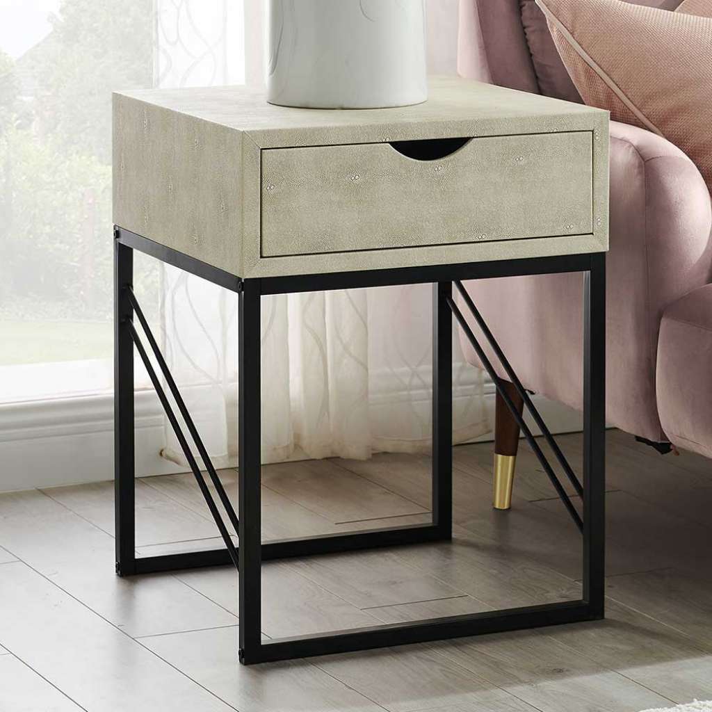 Telefonkonsole in Offwhite & Schwarz Kunstleder Bezug - Metalltisch 46 cm Breit, 61 cm Hoch, 46 cm Tief - Wohnzimmertisch in Offwhite und Schwarz - Telefonregal aus MDF, Kunstleder (100% Polyurethan) und Stahl - Mit Metall Oberfläche pulverbeschichtet - Mit einer Schublade - Mit quadratischer Tischplatte - Mit Bügelgestell - Tischgestell in modernem Design - Zerlegt, zum leichten Selbstaufbau (Montageanleitung liegt bei) - Mit GrifflöchernInformationen zur Lieferung:Der Versand dieses Artikels erfolgt per DHL Paketdienst (Deutsche Post). Sollten Sie bei der Erstzustellung nicht angetroffen werden, hinterläßt der Zusteller in Ihrem Briefkasten eine Benachrichtigungskarte. Sie können die Ware dann in Ihrer Postfiliale vor Ort abholen. Die Auslieferung erfolgt von Montags bis Samstags. Eine Zustellung an Sonn- und Feiertagen ist nicht möglich.