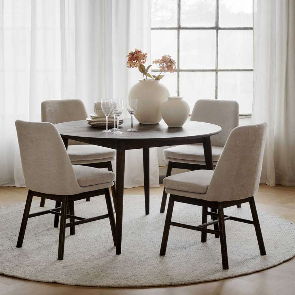Esszimmer Sitzgruppe 4er in Eiche dunkel Cremefarben (fünfteilig)