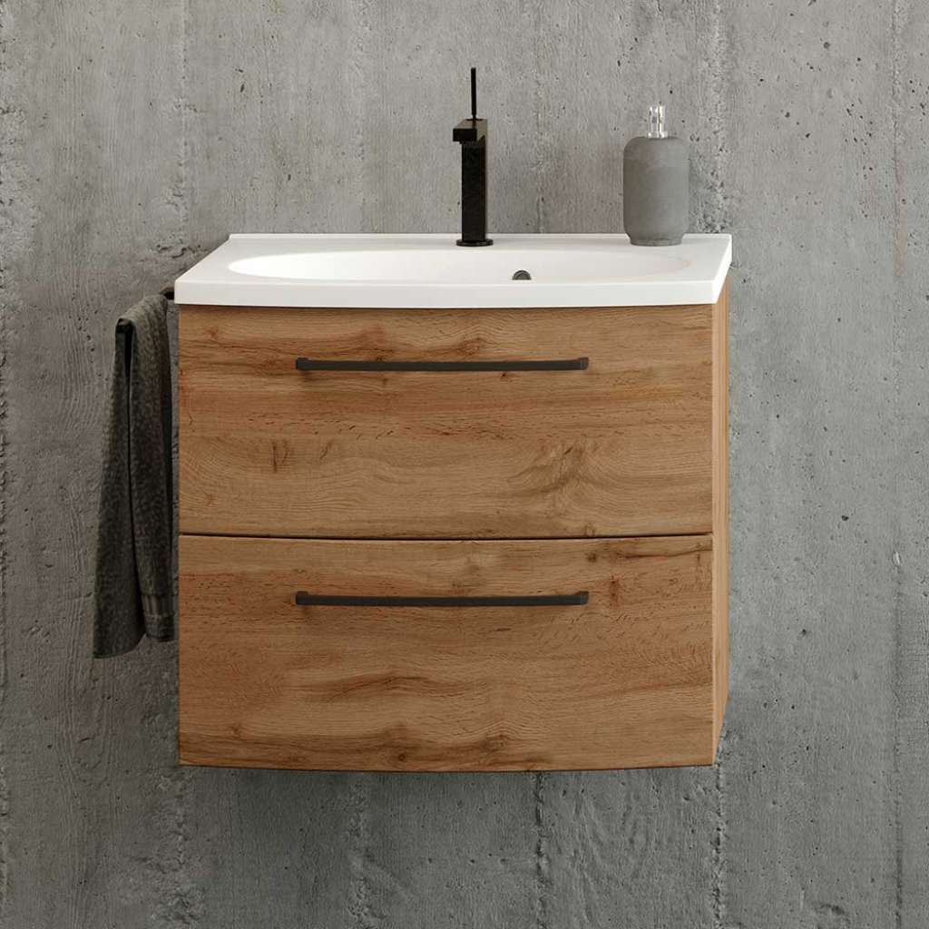 Waschtisch in Wildeichefarben zwei Soft Close Schubladen