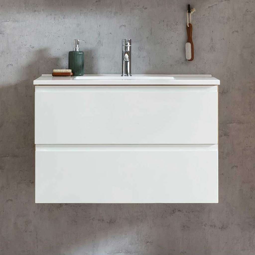 Waschtischunterbau mit Becken in Weiß Wildeichefarben