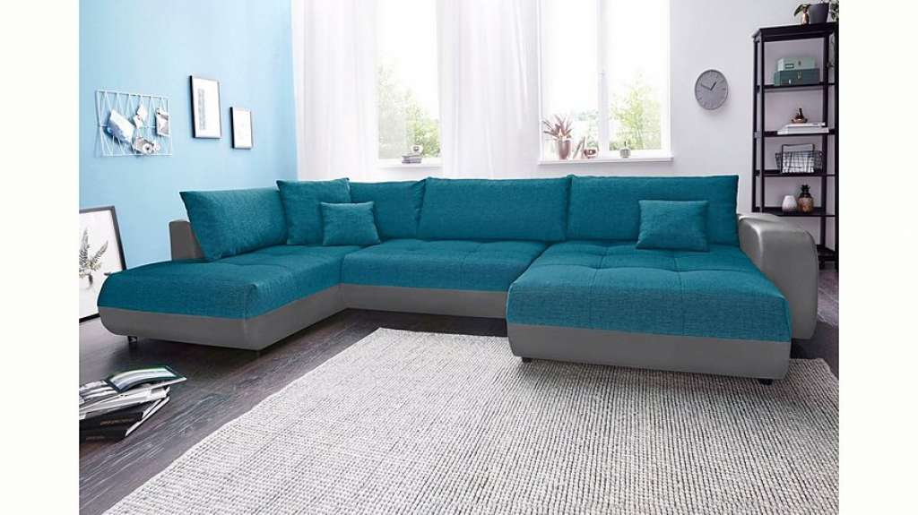 Großzügige Sitz- und Liegefläche bietet diese Wohnlandschaft, die wahlweise mit Bettfunktion und Bettkasten ausgestattet werden kann. Dann kann das Wohnzimmermöbel auch schnell in ein praktisches Bett umgewandelt werden. Lose Zier- und Rückenkissen verleihen zusätzliche Gemütlichkeit. Die bequeme Recamiere kann links oder rechts am Ecksofa bestellt werden. Die trendigen Farbkombinationen machen die Couch-Garnitur zum stylischen Blickfang im Wohnzimmer. Aufgrund der Polsterung und Federung sitzt man besonders angenehm und bequem. Hat einiges zu bieten - die Wohnlandschaft, wahlweise mit Bettfunktion und Bettkasten. ohne Bettfunktion, ohne Beleuchtung, ohne Soundsystem