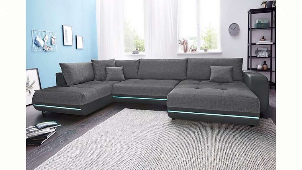 Großzügige Sitz- und Liegefläche bietet diese Wohnlandschaft, die wahlweise mit Bettfunktion und Bettkasten ausgestattet werden kann. Dann kann das Wohnzimmermöbel auch schnell in ein praktisches Bett umgewandelt werden. Lose Zier- und Rückenkissen verleihen zusätzliche Gemütlichkeit. Die bequeme Recamiere kann links oder rechts am Ecksofa bestellt werden. Die trendigen Farbkombinationen machen die Couch-Garnitur zum stylischen Blickfang im Wohnzimmer. Aufgrund der Polsterung und Federung sitzt man besonders angenehm und bequem. Hat einiges zu bieten - die Wohnlandschaft, wahlweise mit Bettfunktion und Bettkasten. RGB-LED-Beleuchtung