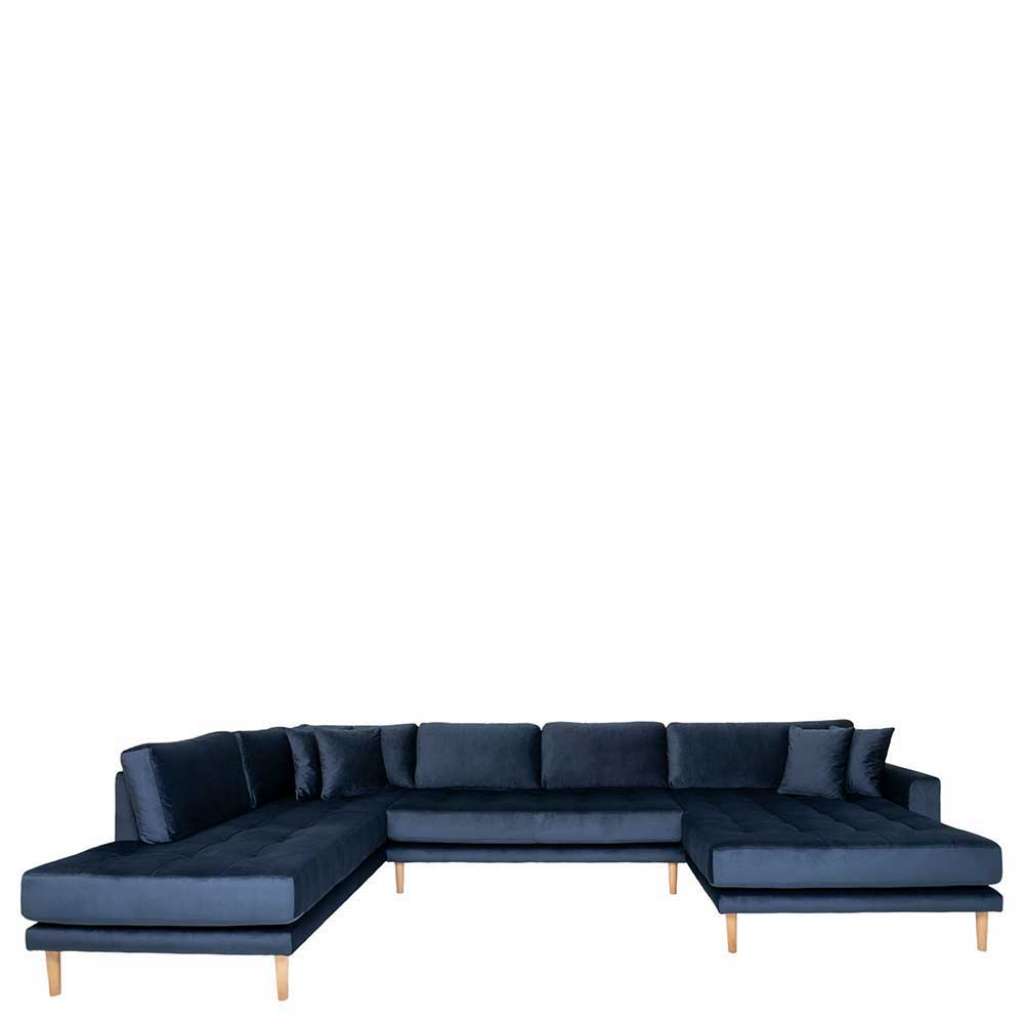 Sofalandschaft in Dunkelblau Samt Eichefarben