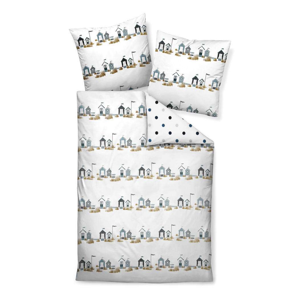Diese Bettwäsche (B x L: ca. 135 x 200 cm) aus Baumwolle verbreitet erfrischendes Flair in Ihrem Schlafzimmer. Dafür sorgt in erster Linie das Design: Häuschen, wehende Fahnen und Andeutungen von Dünen strömen eine nordische Atmosphäre aus. Das Zusammenspiel aus Weiß und Blau unterstreicht den besonderen Look. Kissen- und Deckenbezug aus 100 % Baumwolle fühlen sich dank Satin-Oberflächen angenehm auf Haut an und glänzen zugleich schön. Zudem bestechen die Textilien durch den pflegeleichten Charakter: Die Hüllen mit Reißschluss sind bügelfrei, atmungsaktiv sowie hautfreundlich. Diese Bettwäsche (ca. 135 x 200 cm) aus Baumwolle überzeugt mit sympathischem Auftreten!