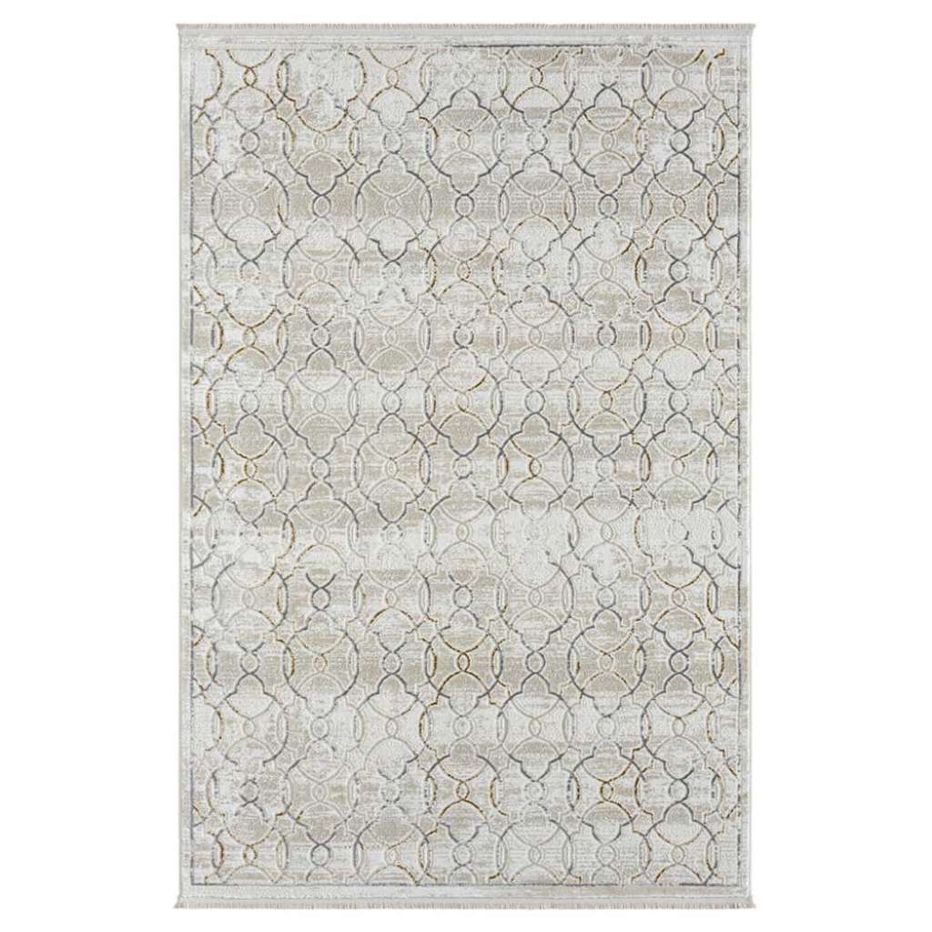 Kachelmuster Teppich Vintage in Hellgrau und Creme Kurzflor