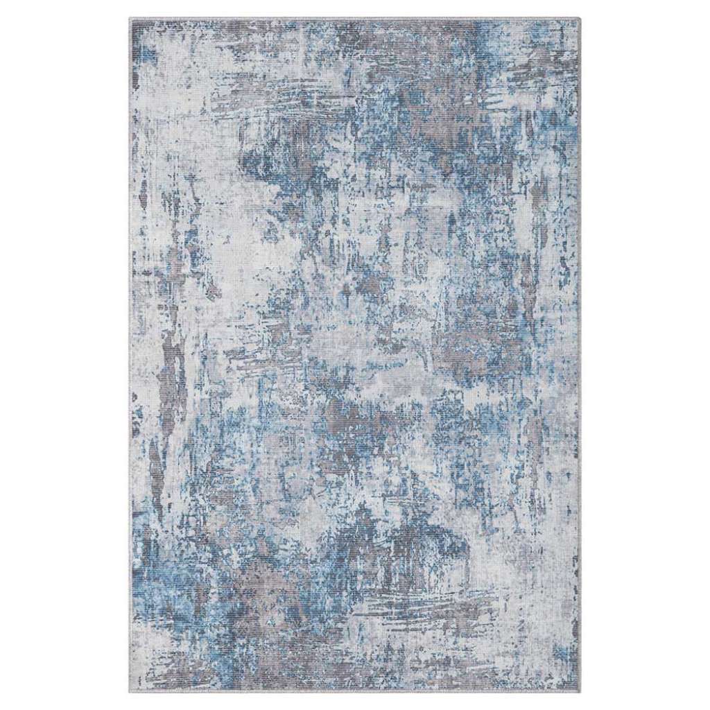 Pflegeleichter Kurzflorteppich in Cremefarben & Blau modern