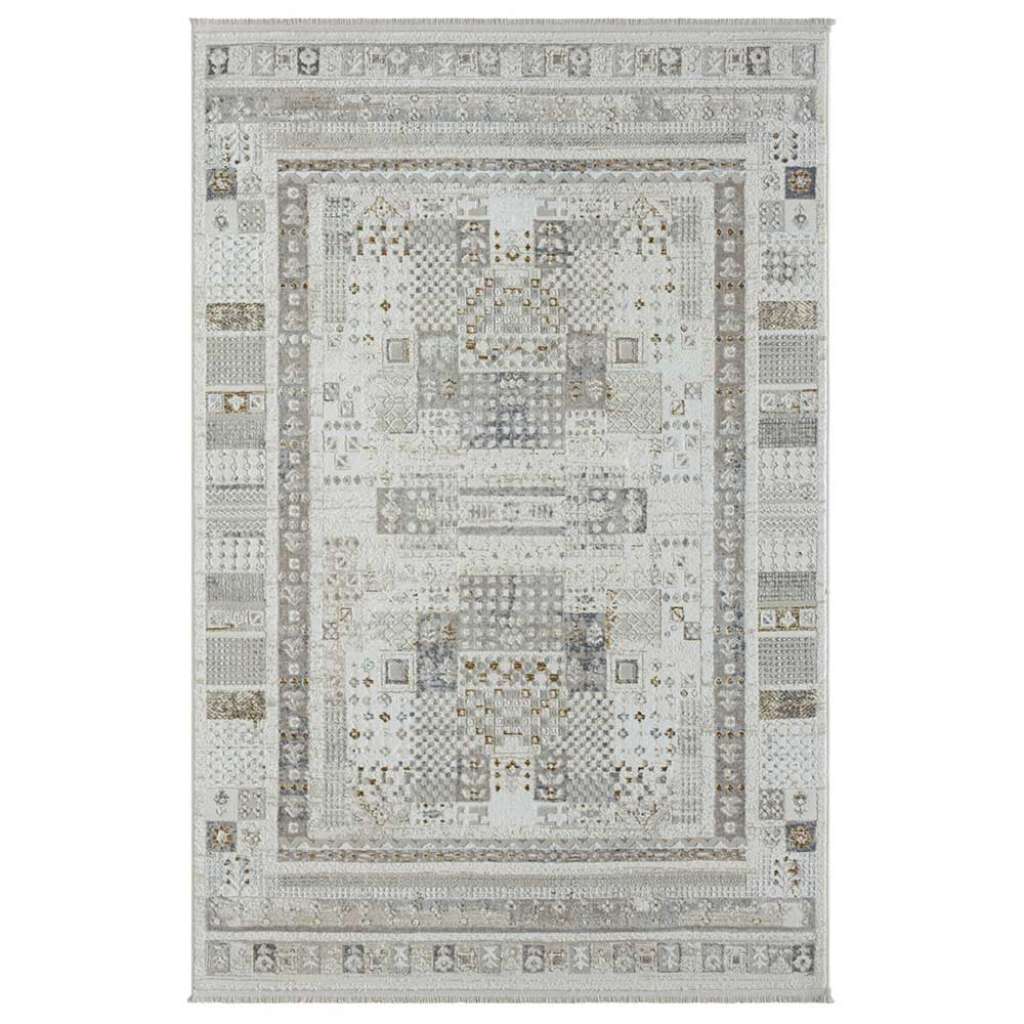 Informationen über Rechteck Teppich gemustert in Hellgrau und Cremefarben Vintage Look