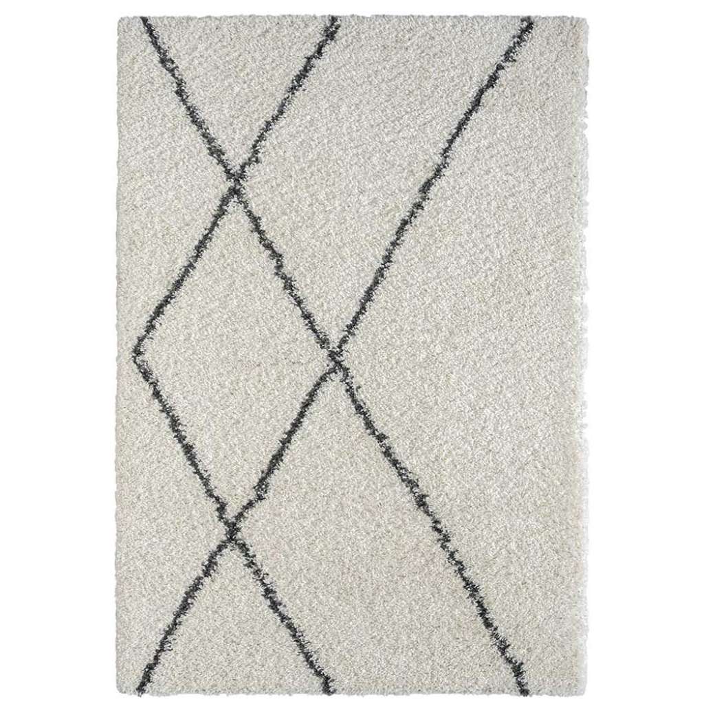 Informationen über Skandi Stil Shaggy Teppich in Cremeweiß und Schwarz geometrischem Muster