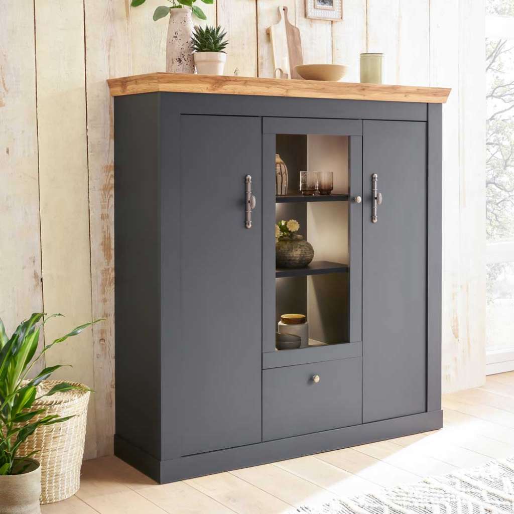 Landhaus Wohnzimmervitrine in Anthrazit Wildeichefarben