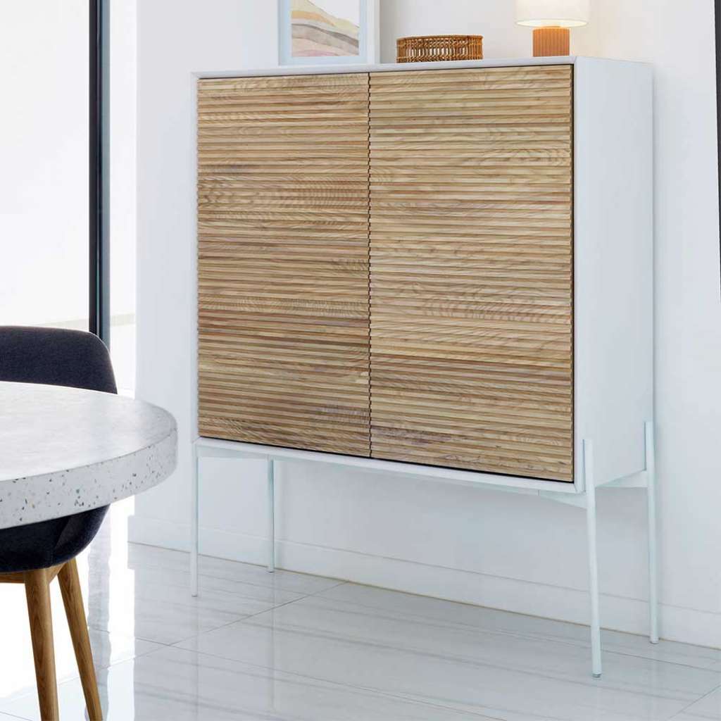 Moderner Whiskyschrank im Skandi Design Metallgestell - Wohnzimmerschrank 107 cm Breit, 140 cm Hoch, 40 cm Tief - In Weiß und Eschefarben - Aus Holzwerkstoff und Eisen - Melaminbeschichtet, furniert und lackiert - Im Skandi Design - Zerlegt, zum leichten Selbstaufbau (Montageanleitung liegt bei) - 2 türig mit Türdämpfung, Innenaufteilung: Mit Einlegeböden - Mit vier Einlegeböden je FacheinheitInformationen zur Lieferung:Der Versand dieses Artikels erfolgt per DHL-Superservice. Dieses beinhaltet folgenden Service für Sie:Terminvereinbarung: Sie werden frühzeitig (ein paar Tage im Voraus) durch die ausliefernde Spedition kontaktiert und Ihnen der Auslieferzeitpunkt mitgeteilt. Die Kontaktaufnahme erfolgt per Telefon. Bei telefonischer Nichterreichbarkeit werden Sie per Postkarte über das Auslieferdatum informiert.Lieferung Frei Verwendungsstelle: Der Transport erfolgt an Ort und Stelle. Sie bestimmen, wohin Sie die Ware getragen haben möchten. Ob Dachgeschoss, Erdgeschoss, Schlaf- oder Wohnzimmer - die Ware wird an den von Ihnen gewünschten Ort vertragen.Zwei Speditionsfahrer vertragen die Ware: keine Mithilfe beim Entladen und Vertragen der Ware nötig. Die Speditionsfahrer sind auf den Möbeltransport spezialisiert und entsprechend geschult, somit sind Transportreklamationen nahezu ausgeschlossen.Die Auslieferung erfolgt von Montags bis Freitags. Eine Zustellung an Sonn- und Feiertagen ist nicht möglich.Alle aufgeführten Serviceleistungen sind im Artikelpreis enthalten. Es fallen keine weiteren Kosten für Sie an. Bei Insellieferungen kann nur ein reiner Abgabeservice angeboten werden - das Vertragen der Ware + Verpackungsentsorgung entfällt hierbei.