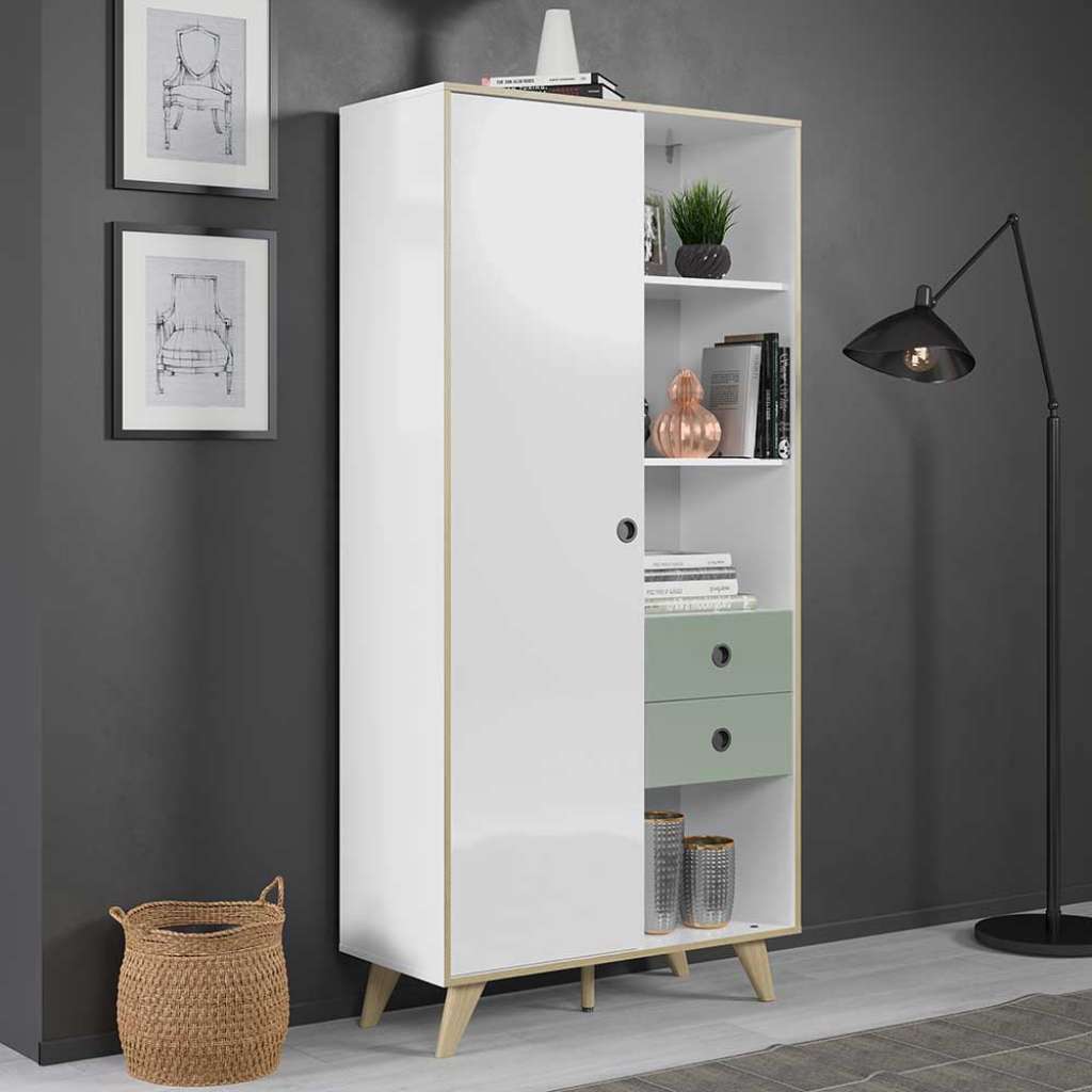 Skandi Stil Schrank Hochglanz in Weiß und Mintgrün 90x188x40 cm